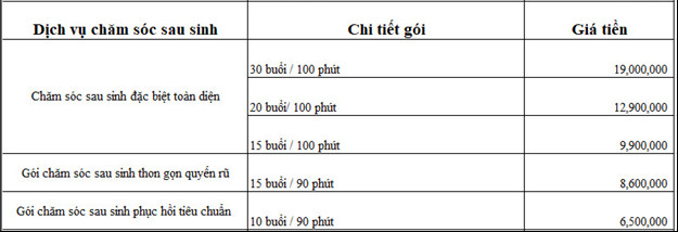 Các gói Chăm sóc sau sinh