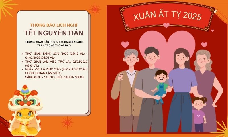 Phòng khám sản phụ khoa Bác sĩ Khanh trân trọng thông báo lịch nghỉ Tết Nguyên Đán Ất Tỵ.